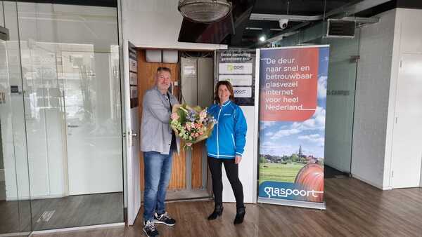 In april is de uitrol van glasvezel begonnen op bedrijventerrein De Kampen in de gemeente Maasdriel. Inmiddels is ongeveer 7 kilometer gegraven en al bijna 50 kilometer glasvezel in de grond gelegd. Nu worden de aansluitingen in de bedrijfspanden gemaakt. Van Rijnsbergen BV is het eerste bedrijf op De Kampen waar een glasvezelaansluiting van Glaspoort wordt gemonteerd. Danielle Vos - van Rijnsbergen van Van Rijnsbergen BV is blij met de mogelijkheden van deze supersnelle en stabiele internetverbinding: "Wij zijn al vanaf 1918 een familiebedrijf in de transport en logistiek dienstverlening in de ruimste zin van het woord. De glasvezelverbinding brengt ons verder."